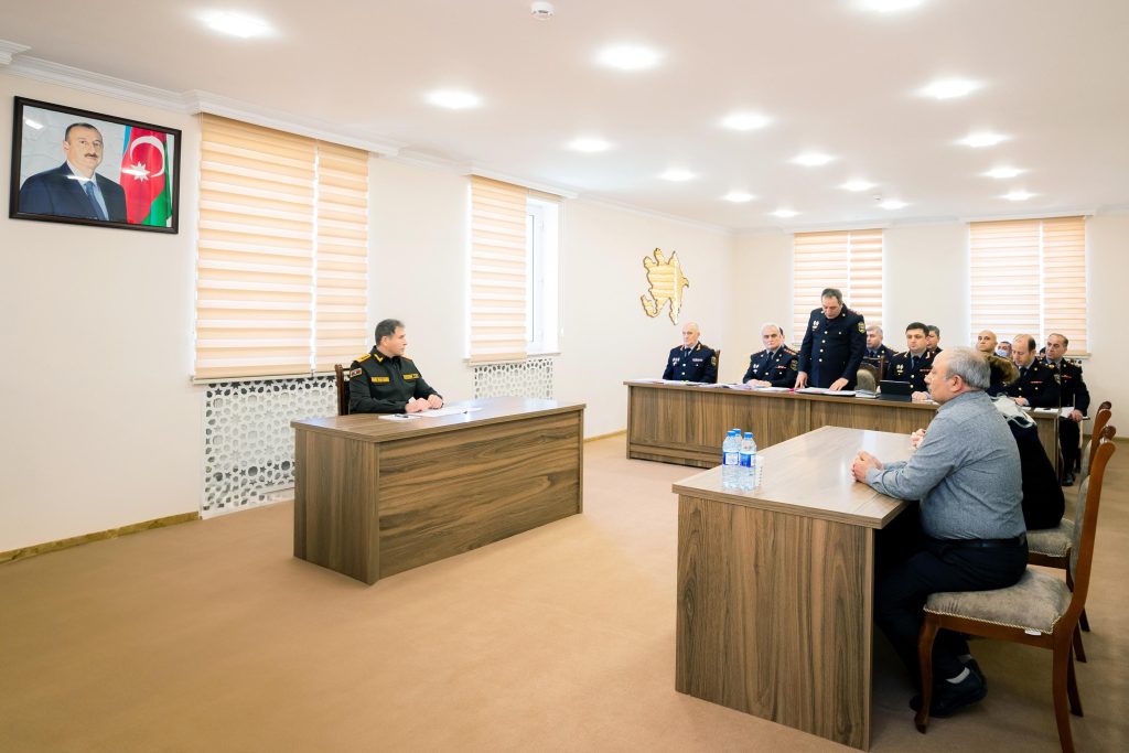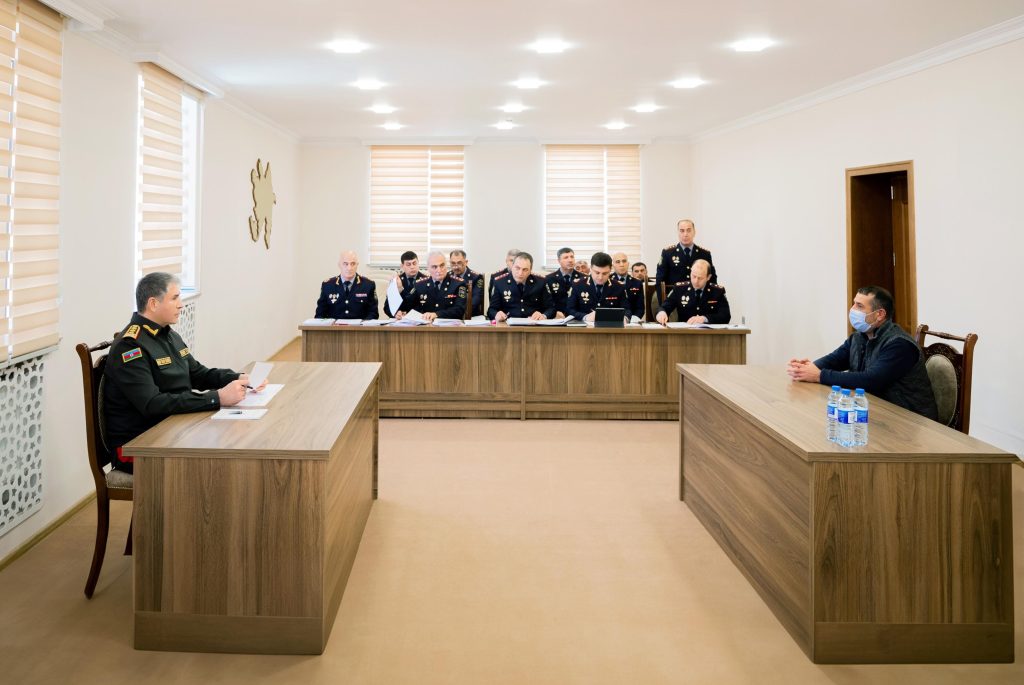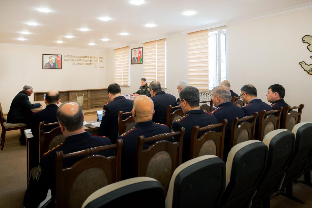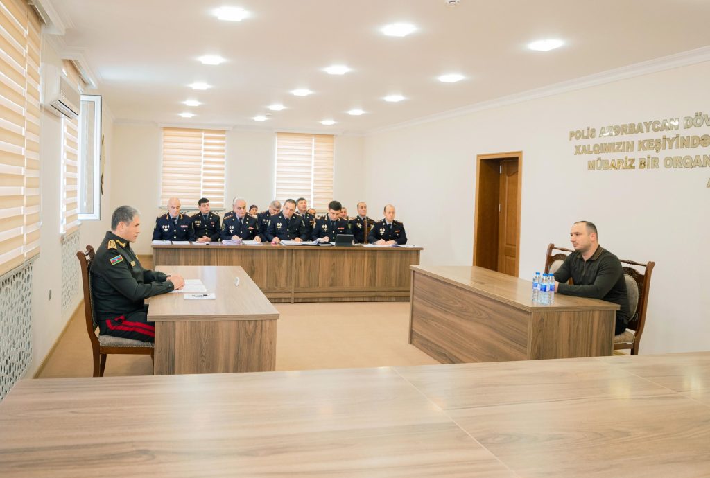 Səfər çərçivəsində general-polkovnik V.Eyvazov bölgə üzrə polis orqanlarında sıravi və kiçik rəis heyətinə xidmətə qəbulla bağlı sıra baxışı keçirib.
