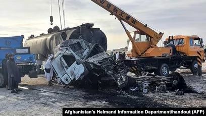 Bildirilib ki, Qəndəhar-Herat avtomobil yolunda motosiklet sərnişin avtobusuna çırpılıb, daha sonra isə yanacaq daşıyan tankerlə toqquşub.