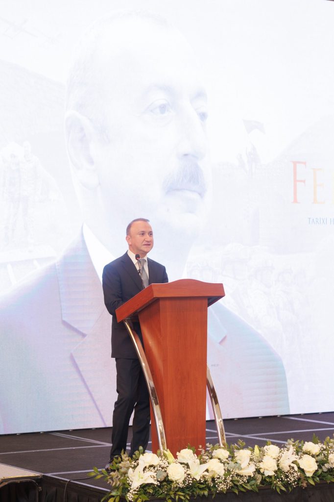 Tədbiri giriş nitqi ilə açan Nərimanov Rayon İcra Hakimiyyətinin başçısı Elgin Həbibullayev Qarabağ zəfərinin unikallığı, tarixdə şəxsiyyətin rolunun əhəmiyyəti, prezident İlham Əliyev fenomeninin tariximizdə və taleyimizdəki önəmi barədə söz açaraq, tarixin mürəkkəb bir dönəmində qazanılan parlaq zəfərin nəinki Azərbaycan, həmçinin dünya hərb və diplomatiya tarixinin ən unikal hadisələrindən biri olduğunu bildirib. Əminlik ifadə edib ki, Prezident İlham Əliyev və Birinci vitse-prezident Mehriban xanım Əliyevanın rəhbərliyi ilə Qarabağda aparılan böyük quruculuq işləri növbəti fenomenə çevriləcək və bu haqda da kitablar və əsərlər yazılacaq.