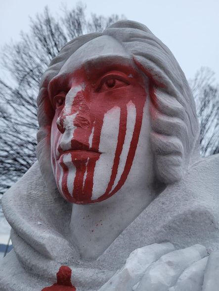 Heykəli götürərkən üzərindəki örtük açılıb. Müəyyən olunub ki, abidənin üzərinə qırmızı boya atılmaqla yanaşı – heykəlin gözləri, adının və Azərbaycan yazısının yazıldığı hissələrə qırmızı boya çəkilib – onun özünə də zərər verilib. Belə ki, heykəlin burnu və barmaqları qırılıb.