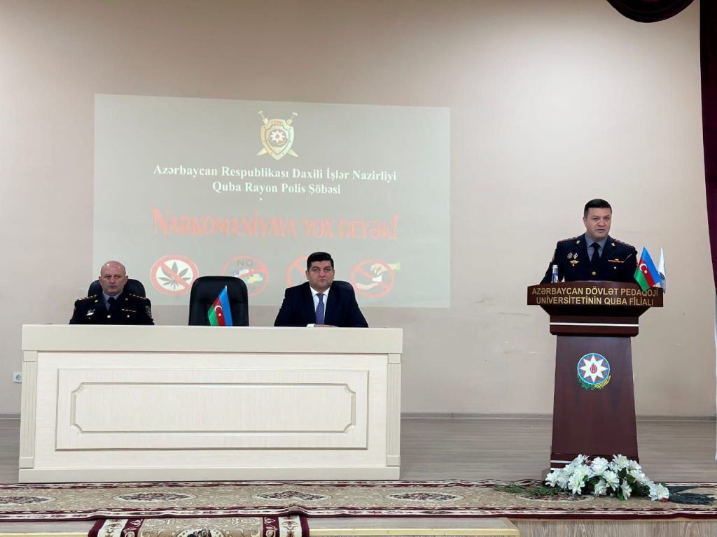 Quba Rayon Polis Şöbəsinin təşkilatçılığı ilə Azərbaycan Dövlət Pedaqoji Universitetinin (ADPU) Quba filialında narkomaniyanın fəsadlarından bəhs edən maarifləndirmə tədbiri keçirilib.