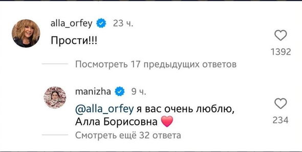 2021-ci ildə “Avroviziya”da Rusiyanı təmsil edən Manija buna cavab olaraq, onu çox sevdiyini yazıb.
