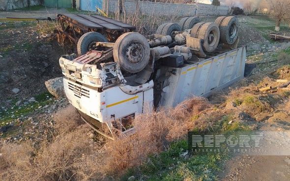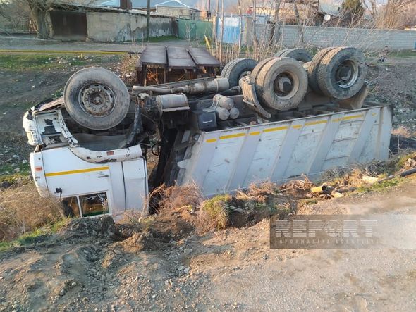 Belə ki, Eldəniz Nağıyevə məxsus hərəkətdə olan 77-EC-439 nömrəli yük maşını idarəetməni itirib və yol kənarında yerləşən dərəyə aşıb.