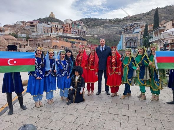 Martın 20-də Tbilisidəki Heydər Əliyev Parkının qarşısında Novruz bayramı münasibətilə təntənəli tədbir keçirilib.