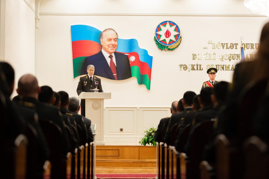 Əlamətdar gün münasibətilə Prezident, Silahlı Qüvvələrin Ali Baş Komandanı cənab İlham Əliyevin ən xoş arzularını şəxsi heyətə çatdıran general-polkovnik Vilayət Eyvazov Milli Lider Heydər Əliyevin ordu quruculuğu prosesində Daxili İşlər Nazirliyinin Daxili Qoşunlarının təkmilləşməsinə böyük önəm verdiyini, məhz onun xüsusi diqqət və qayğısı ilə formalaşıb inkişaf etdiyini məmnunluqla diqqətə çatdırıb.