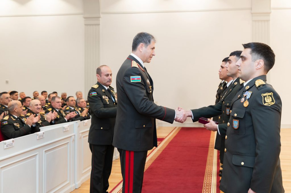 Sonra xidmətdə fərqlənən bir qrup hərbi qulluqçunun təltif edilməsi barədə daxili işlər nazirinin və nazir müavini- daxili qoşunların komandanının imzaladıqları əmrlər elan olunaraq mükafatlar sahiblərinə təqdim edilib.