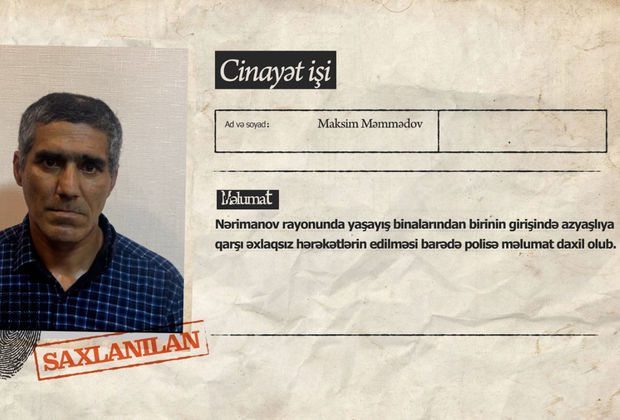 Bildirilib ki, Nərimanov Rayon Polis İdarəsinin əməkdaşlarının keçirdikləri tədbirlərlə hadisəni törədən Maksim Məmmədov saxlanılıb. Araşdırma zamanı müəyyən edilib ki, o, əvvəlcə azyaşlını izləyib. Daha sonra binanın girişində yaxınlaşaraq ona qarşı əxlaqsız hərəkətlər edib.