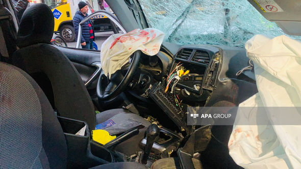 Qəza nəticəsində “Toyota”nın sürücüsü və sərnişini ağır xəsarət alaraq salonda sıxılıb qalıblar.