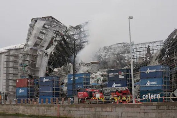 Kopenhagen birjasının binasında baş verən yanğını artıq dördüncü gündür ki, söndürmək mümkün olmur.