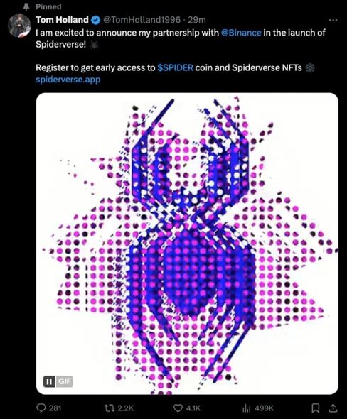Aktyorun “X” sosial şəbəkəsindəki səhifəsində (keçmiş “Twitter”) Tom Hollandın ən böyük kriptovalyuta birjası “Binance” ilə tərəfdaşlıq müqaviləsinin elan edildiyi bir sıra materiallar dərc olunub. Burada fırıldaqçılar “Spiderverse” adlı qeyri-işlək tokenlər kolleksiyasının satışa çıxarıldığını yazıblar və hər kəsə perspektivli token almaq imkanı təklif edən resursa keçid yerləşdirdilər.