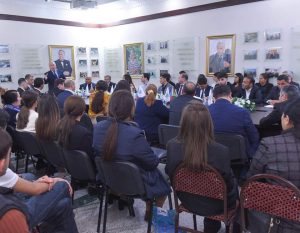 İlk olaraq görüşdə çıxış edən Millət vəkili Aqil Məmmədov tədbir iştirakçılarını və gəncləri salamlayaraq qeyd etmişdir ki, hər bir vətəndaş peşəsindən, vəzifəsindən, statusundan və tutuduğu mövqedən asılı olmayaraq öz vətəndaşlıq borcunu layiqincə yerinə yetirməlidir. Gənclərimiz daima cənab prezident İlham Əliyevin ətrafında sıx birləşməli, çalışdığı, təhsil aldığı yerlərdə xalqa, dövlətə ləyaqətlə xidmət etməli, dövlətimizin apardığı uğurlu siyasəti, əldə olunan sabitliyi xalqa çatdırmaq üçün təbliğatçısı olmalı, sosial şəbəkələrdə ölkəmizə, dövlətimizin uğurlu siyasətinə kölgə salmağa çalışanlara qarşı daima mübarizə aparmalı olduğunu vurğulayıb.