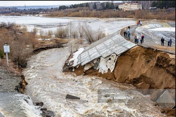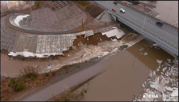 Rusiyanın Tomsk şəhərində çayın daşması nəticəsində yaranan sel su bəndini aşındırıb.