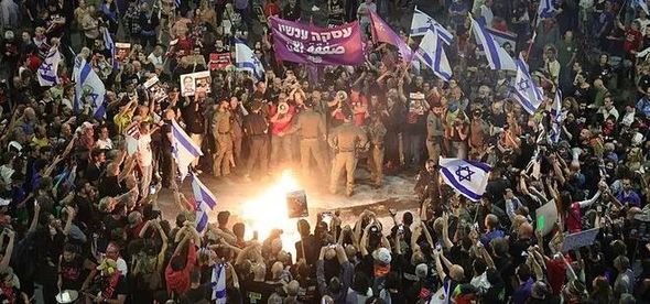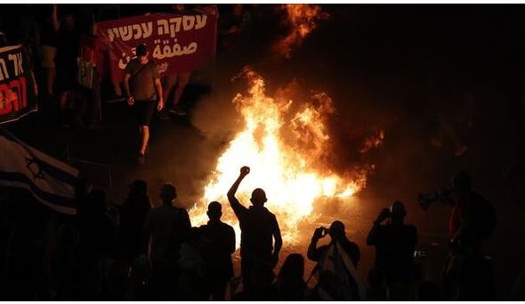 Qəzza zolağındakı israilli əsirlərin yaxınları, onların tərəfdarları və baş nazir Benyamin Netanyahu hökumətinin əleyhdarları olan minlərlə insan Təl-Əvivdə Müdafiə Nazirliyinin qarşısına toplaşıb. Etirazçılar hökumətdən atəşkəs və əsir mübadiləsi ilə bağlı razılaşmanın əldə olunmasını tələb ediblər.