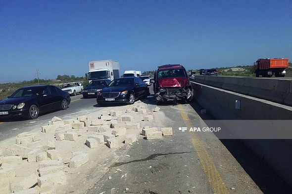 APA-nın xəbərinə görə, hadisə Bakı-Qazax əsas magistral yolunun rayonun Alpı kəndindən keçən hissəsində qeydə alınıb. Qazax istiqamətində hərəkətdə olan “KamAZ” markalı yük maşını ilə “Mercedes Vito” markalı mikroavtobus və “Mercedes-Benz” markalı minik maşını toqquşub.