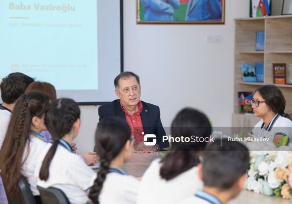B.Vəziroğlu məktəbdə qonaq olmasından məmnunluğunu ifadə etdi: “Mən hər gün özümü tələbə hiss edirəm. Hər gün öyrənirəm. Bəlkə yeni bir söz və ya məlumat eşitdim. Hətta balaca bağça uşaqlarına da müəllim kimi baxıram. Onlardan da nəyisə öyrənməyə çalışıram”.