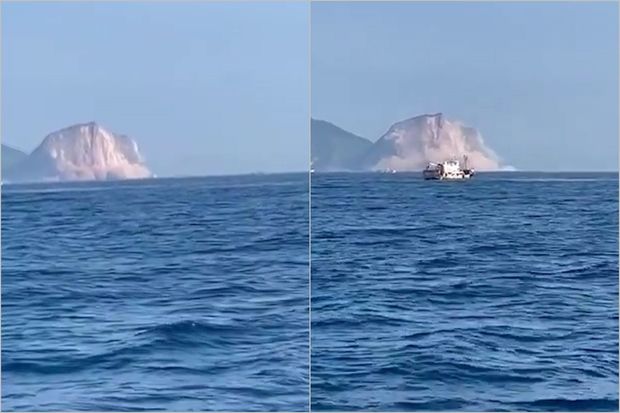 Kadrların birində Tayvanın şərqindəki Yilan sahillərində Quyşan adasının (Tısbağa dağı adası) bir hissəsinin uçması əks olunub.