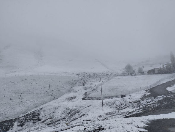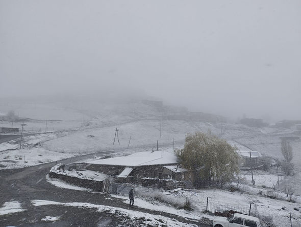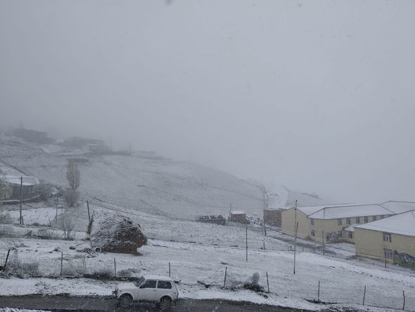 Quba rayonunun Xınalıq kəndi isə artıq ağ örpəyə bürünüb.