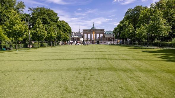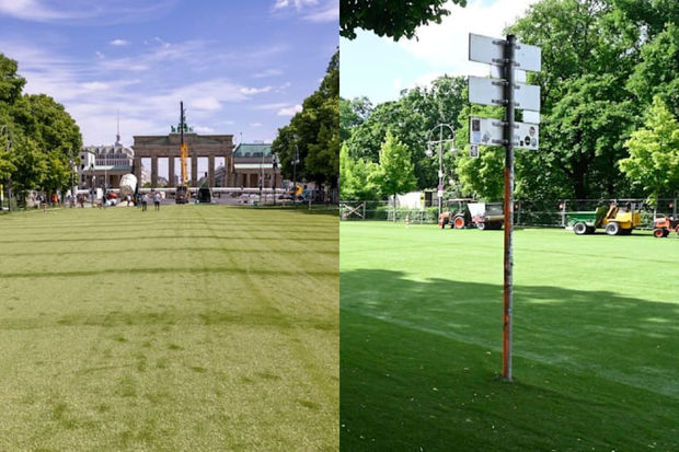Berlindəki Brandenburq darvazaları yaxınlığında nəhəng futbol meydançası peyda olub.