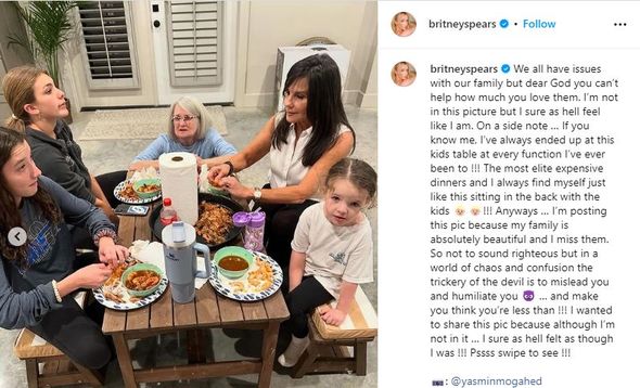 Müğənninin sosial şəbəkədəki hesabında paylaşdığı fotoşəkillərdən birində Britni Spirsin anası, nənəsi və bacısı Ceymi Linnin qızları ilə birgə görüntüləri əks olunub.