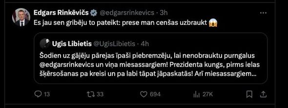 Bu barədə Latviya radiosunun xəbər xidmətinin rəhbəri və avtomobilin sükanı arxasında olan Ugis Libietis bildirib. Onun sözlərinə görə, prezidentin ayaqları üstündən keçmək üzrə olub və avtomobilini son anda saxlaya bilib.