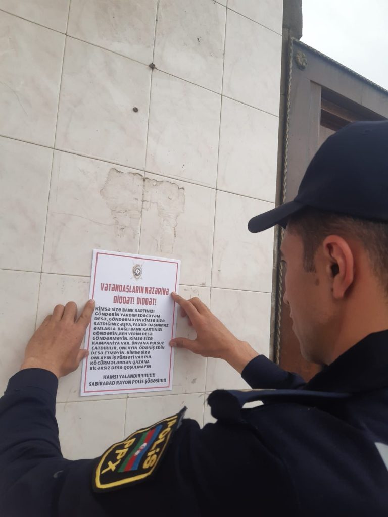 Sabirabadda kiberdələduzluq və bank kartlarından oğurluq halları ilə mübarizə çərçivəsində profilaktiki tədbirlər davam etdirilir.