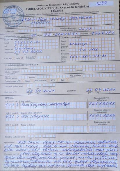 Ailə ilə əlaqə: (050) 203-08-85.