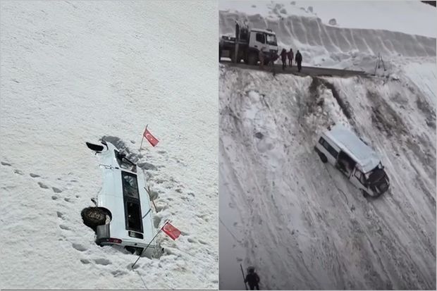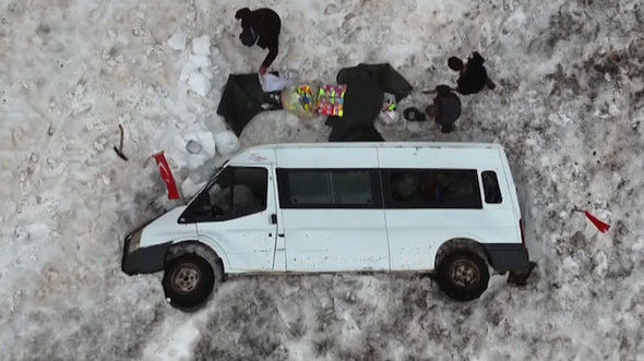 Türkiyədə uçqun nəticəsində dörd ay qarın altında qalan mikroavtobus səkkiz saatlıq işdən sonra çıxarılıb.