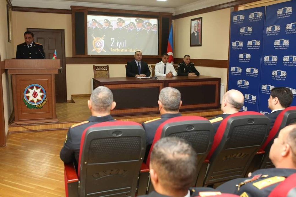 Kəlbəcər rayon İcra Hakimiyyətinin başçısı Azər Qocayev öz çıxışında Azərbaycan Polisinin tarixinə nəzər salaraq, bu gün Azərbaycan Respublikasının Prezidenti İlham Əliyevin diqqət və qayğısı sayəsində Azərbaycan Polisinin güclü maddi-texniki bazası olması, ictimai asayişin, qanunçuluğun və hüquq qaydasının qorunması üzrə dəqiq təşkil edilmiş sistemi və peşəkar kadr korpusu olan vahid mərkəzləşdirilmiş hüquq-mühafizə orqanı olmasını qeyd etmişdir. Prezident İlham Əliyevin diqqət və qayğısı sayəsində davam edən bu inkişaf və modernləşmə vətəndaşlarımızın qanunla qorunan hüquq və mənafelərini etibarlı müdafiə etməyə, cinayətkarlığa, onun transmilli mütəşəkkil növlərinə qarşı mübarizədə adekvat cavab tədbirləri görməyə tam imkan verir.