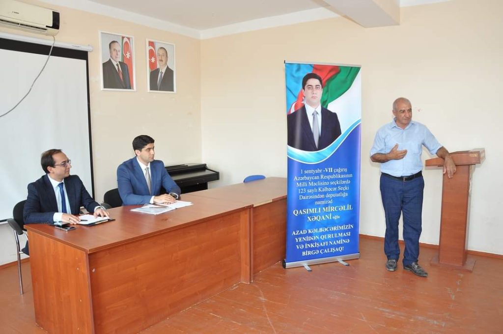 Rayon ziyalılarından həkim Yasin İsmayılov, qocaman pedaqoq Kamil Qədimov və digər çıxış edənlər qeyd etdilər ki, Əziz seçicilər, doğma kəlbəcərlilər, bu gün qurucu lider olan Prezident İlham Əliyev işğaldan azad edilmiş ərazilərə Böyük Qayıdışın reallaşması üçün inanılmaz qətiyyət və əzmkarlıq göstərir. Görülən bütün işlər Azərbaycan xalqının, Azərbaycan vətəndaşının daha xoş güzəranını qurmaq, sabahını daha firavan etmək məqsədi daşıyır. Hər birinizi 1 sentyabrda Milli Məclisə seçkilərdə namizədimiz Mircəlil Qasımlıya səs verməyə çağırırıq.