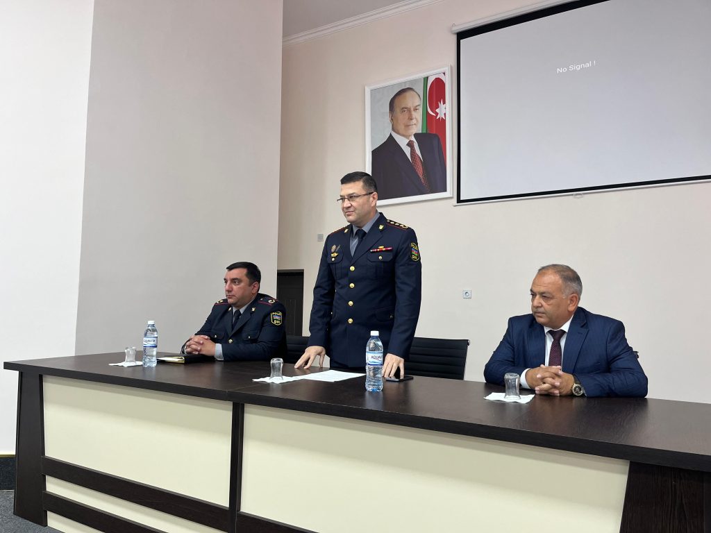 Çıxış edən RPŞ-nin rəisinin şəxsi heyət üzrə köməkçisi, polis mayoru Rüstəm Hüseynov Daxili İşlər Nazirliyinin Polis Akademiyası barədə şagirdlərə ətraflı məlumat verərək, təhsil müəssisəsinin yaranma tarixi, inkişafı, ölkəmizdə hüquq elminin inkişafına verdiyi töhfələr, daxili işlər orqanlarının ali təhsilli hüquqşünaslarla təmin olunmasındakı fəaliyyətindən danışıb.