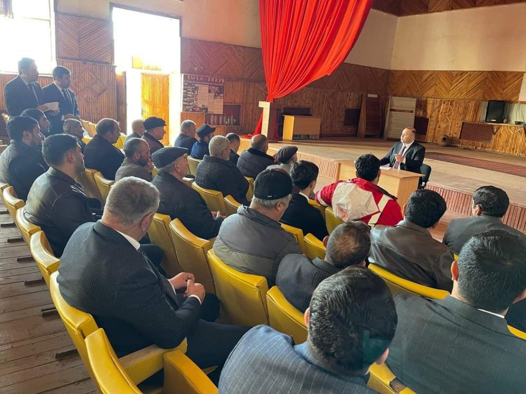 İcra Hakimiyyətinin başçısı, Azər Qocayev, görüşü açarkən, ölkə başçısı İlham Əliyevin rəhbərliyi altında həyata keçirilən mühüm dövlət proqramlarından və həyata keçirilən tarixi layihələrdən danışmışdır. O, xüsusilə Azərbaycan xalqının “Zəfər salnaməsi”ni yazan 44 günlük Vətən müharibəsindəki şanlı qələbəni və bunun nəticəsində əldə olunan ərazi bütövlüyünün bərpasını vurğulamışdır. Qocayev, həmçinin, düşmənə ağ bayraq qaldırmağı və qondarma dövlət qurumlarının ləğv edilməsini təmin edən lokal antiterror əməliyyatlarının uğurla icra edildiyini xatırlatmışdır.