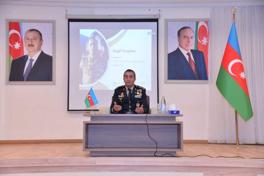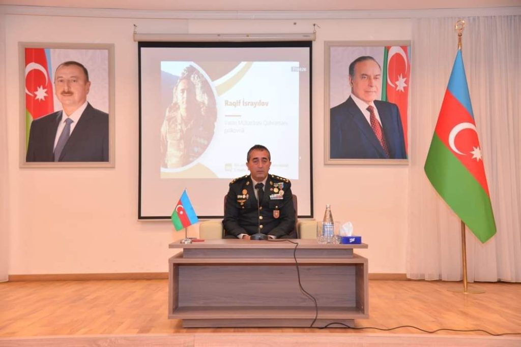 Zəfər Gününün növbəti ildönümü ərəfəsində baş tutan görüş Azərbaycan oğullarının Qarabağda yazdığı tarix barədə müharibənin canlı şahidinin xatirələri, şagirdlərin maraqlı sualları üzərində qurulub. Səmimi ünsiyyət şəraitində keçən görüşdə R.İsrayılov Ali Baş Komandanın verdiyi döyüş əmrindən, 30 ildir hər bir azərbaycanlının həsrətlə gözlədiyi bu qərardan sonra həm ön, həm də arxa cəbhədə insanların birliyindən, göstərilən qəhrəmanlıqlardan, Vətən Müharibəsi ilə bağlı yaddaşından silinməyən hadisələrdən bəhs edib.