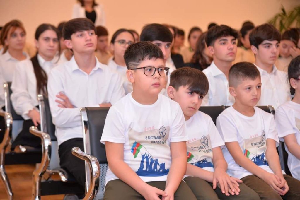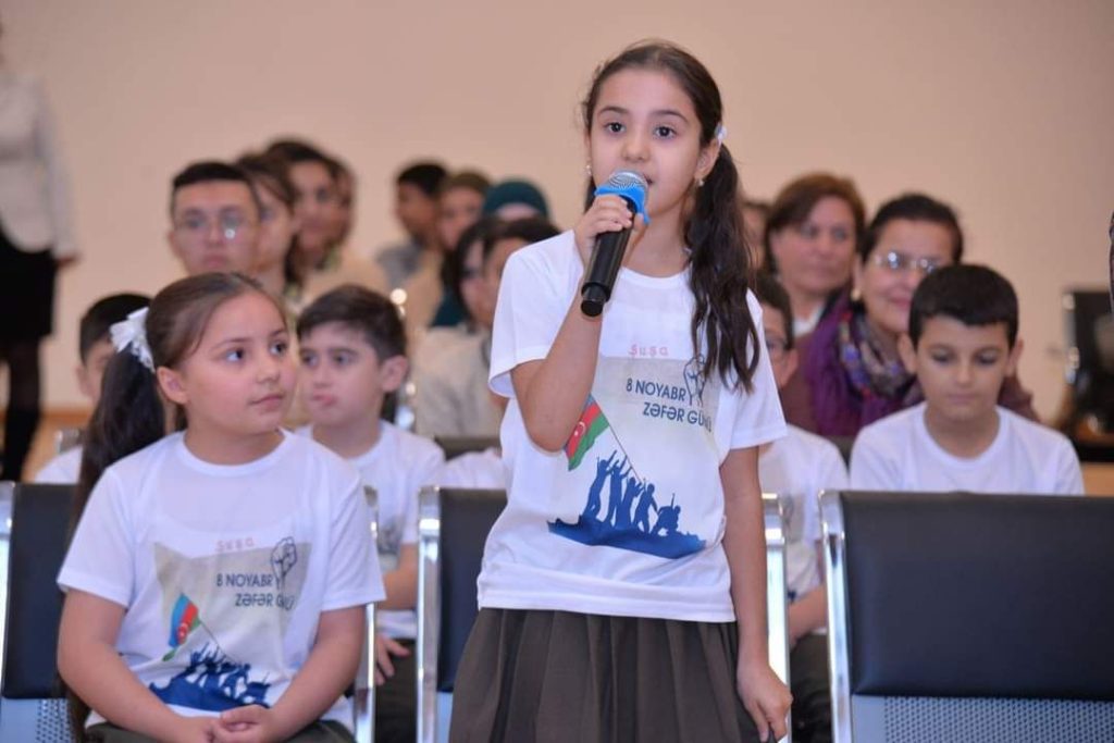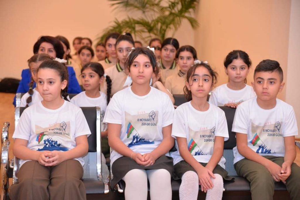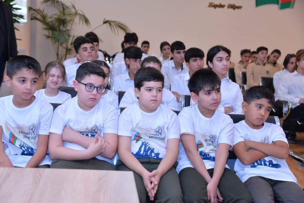 Ilk olaraq məktəbin direktoru Xoşqədəm Məmmədova görüş iştirakçılarını salamlayıb, Vətən Müharibəsi haqqında qonaqlara, şagirdlərə geniş məlumat verib.