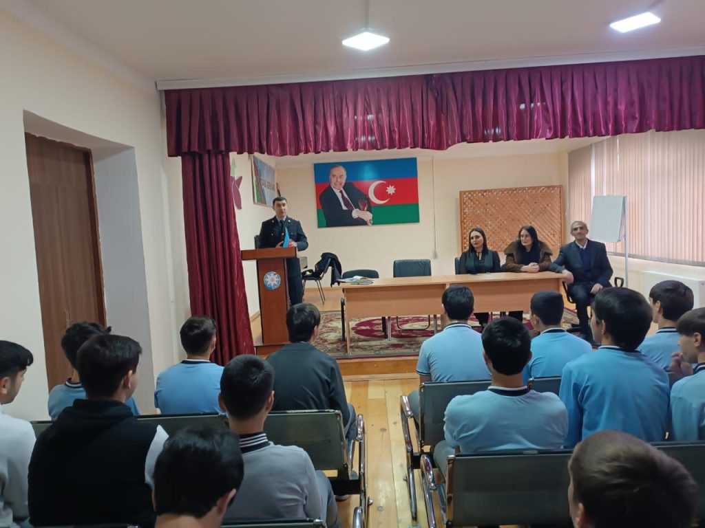Dekabrın 2-6-sı tarixlərində Xaçmazda DİN-in Polis Akademiyasının nümayəndəsi və Xaçmaz RPŞ-nin əməkdaşının iştirakı ilə IX-XI sinif şagirdləri ilə “Gənclərin DİN sistemində təhsilə və xidmətə təşviq edilməsi” məqsədi ilə görüşlər keçirilib. Görüşdə şagirdlərə Polis Akademiyasına qəbul qaydaları və orada yaradılmış maddi-sosial baza haqqında geniş məlumatlar verilib. Həmçinin gənclərə gələcəkdə dövlətinə və vətəninə sadiq olmaq və sağlam ruhda böyümək üçün müəyyən tövsiyyələr verilib.