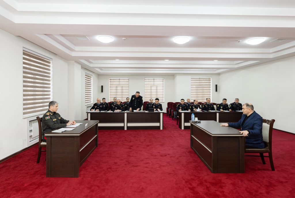 Səfər çərçivəsində general-polkovnik V.Eyvazov bölgə üzrə polis orqanlarında sıravi və kiçik rəis heyətinə xidmətə qəbulla bağlı sıra baxışı keçirib.