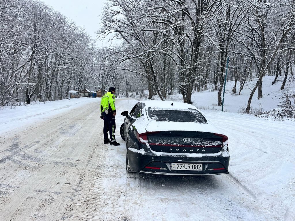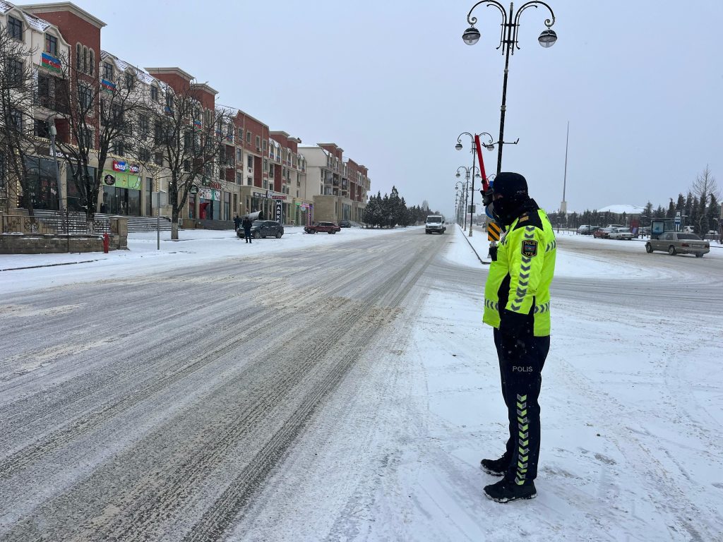 Dövlət Yol Polisi Bölməsinin əməkdaşları əsas magistral yollarla yanaşı, dağlıq və kənd ərazilərində də nəzarəti gücləndiriblər. Əsas məqsəd sürücülərə dəstək olmaq, onların qarlı və buzlu yollarda təhlükəsiz hərəkətini təmin etmək, yol-nəqliyyat hadisələrinin qarşısını almaqdır. Bunun üçün polis əməkdaşları nəqliyyat vasitələrinin təkərlərini və texniki vəziyyətini yoxlayır, sürücülərə zəruri tövsiyələr verir və ehtiyac olduqda onlara yardım edirlər.
