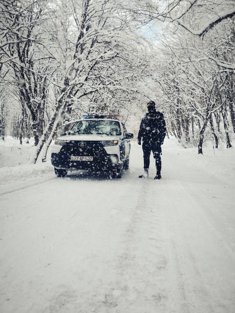 Hazırda müşahidə olunan şaxtalı hava şəraiti ilə əlaqədar olaraq polis əməkdaşları tərəfindən gücləndirilmiş rejimdə xidmət hər bir istiqamətdə davam etdirilir. Yaşayış məntəqələrini birləşdiriən magistrallarla yanaşı məhəlləarası yollarda da yaranan problemlərin aradan qaldırılması istiqamətində yerindəcə operativ tədbirlər görülür.
