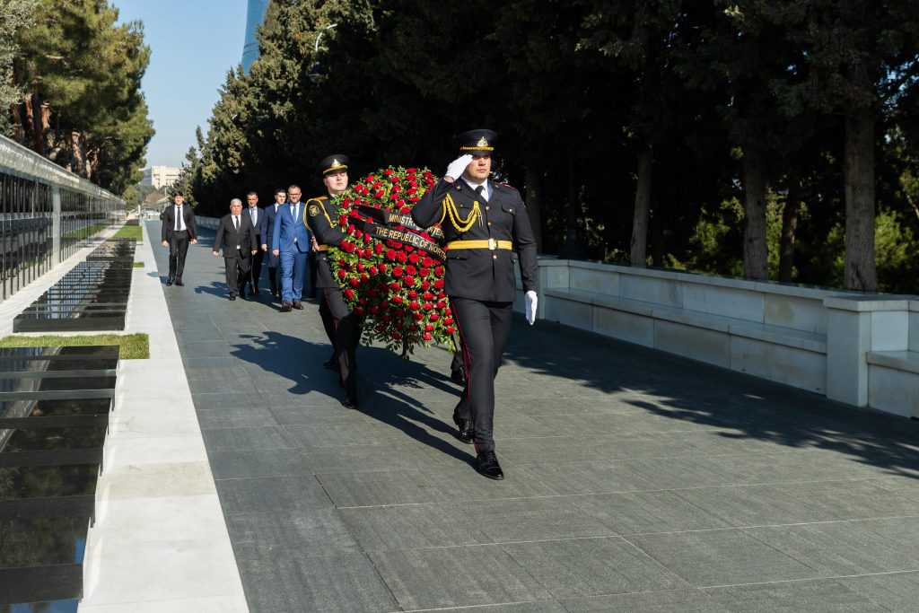 Nazir Pançe Toşkovski və onu müşayiət edən şəxslər Fəxri xiyabana gedərək xalqımızın ümummilli lideri Heydər Əliyevin əziz xatirəsini ehtiramla anıblar. Sonra Şəhidlər xiyabanına gələn qonaqlar ölkəmizin müstəqilliyi, ərazi bütövlüyü uğrunda şəhid olmuş vətəndaşlarımızın məzarlarını ziyarət edərək “Əbədi məşəl” abidəsinin önünə əklil qoyublar.