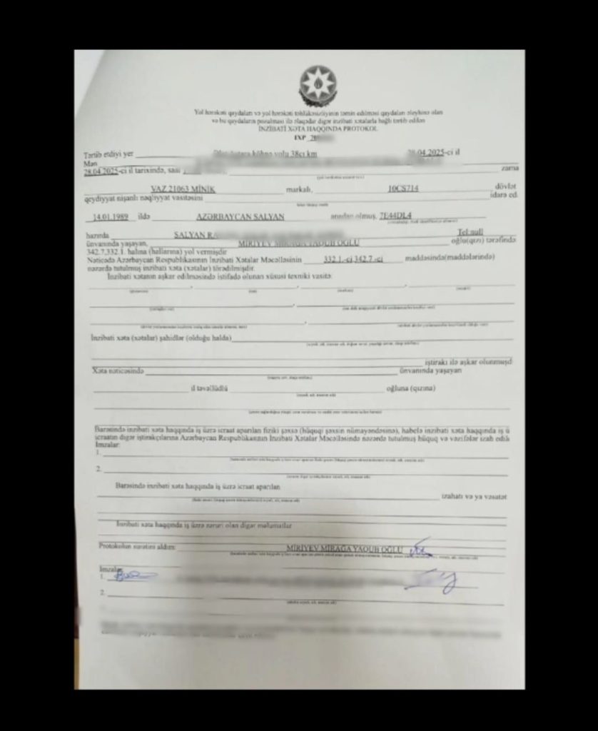 Ələt-Astara yolunun Salyan rayonu ərazisindən keçən hissəsində dövlət qeydiyyat nişansız idarə olunan “VAZ” markalı avtomobil Baş Dövlət Yol Polisi İdarəsinin YPX Alayının əməkdaşları tərəfindən saxlanılıb. Avtomobili idarə edən Mirağa Miriyevin sənədləri yoxlanılarkən hərəkətləri şübhə doğurduğundan o, tibbi müayinədən keçməyə dəvət olunub.