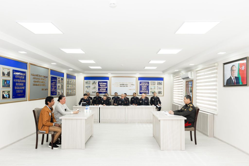 Səfər çərçivəsində general-polkovnik V.Eyvazov bölgə üzrə polis orqanlarında sıravi və kiçik rəis heyətinə xidmətə qəbulla bağlı sıra baxışı keçirib.