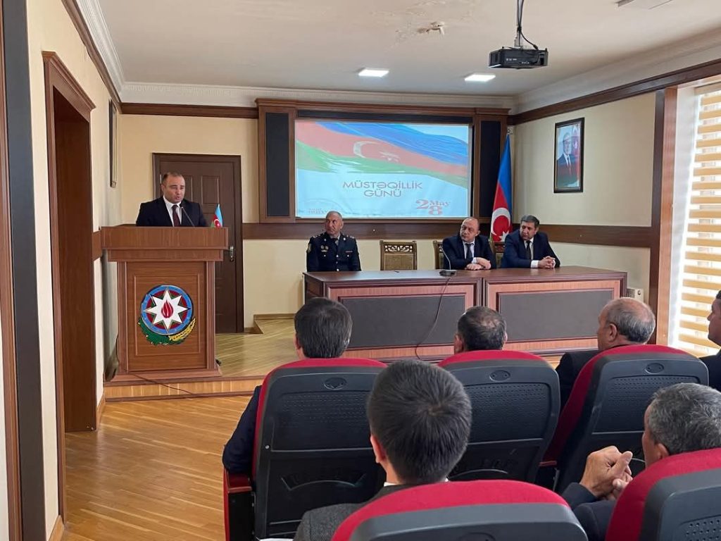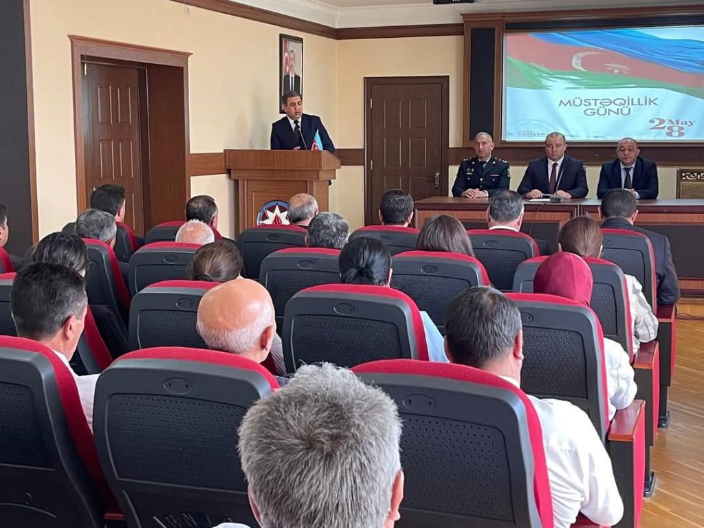 Tədbirdə geniş məruzə ilə çıxış edən Kəlbəcər Rayon İcra Hakimiyyətinin başçısı Azər Qocayev bildirib ki, bu il müsəlman Şərqində ilk parlamentli respublika olan Azərbaycan Xalq Cümhuriyyətinin yaranmasının 107 illiyi tamam olur. RİH başçısı Azər Qocayev Azərbaycan Xalq Cümhuriyyətinin yaranmasından, müstəqilliyimizin keşməkeşli yollarından, milli dövlətçiliyimizin parlaq səhifələrindən danışıb.Bildirib ki, 1918-ci ildə Şərqdə ilk demokratik respublika Azərbaycan Xalq Cümhuriyyətinin yaranması milli dövlətçilik tariximizdə öz önəmi və dəyəri, böyük tarixi əhəmiyyəti olan hadisədir. Cəmi 23 ay yaşamasına baxmayaraq həyata keçirdiyi silsilə tədbirlər xalqına, millətinə, onun beynəlxalq səviyyədə tanınmasına, müstəqil demokratik dövlət kimi fəaliyyət göstərməsinə tutarlı bir tarixi faktdır. Azər Qocayev xalqımızın ümummilli lideri Heydər Əliyevin və Azərbaycan Respublikasının Prezidenti, Silahlı Qüvvələrin Müzəffər Ali Baş Komandanı cənab İlham Əliyevin sərancamlarına əsasən bu tarixi günün hər il xalqımız tərəfindən bayram edildiyini xüsusi vurğulayıb.Eyni zamanda qeyd edib ki, müasir, müstəqil Azərbaycan bu gün uğurla, inamla inkişaf edir, qüdrətlənir,Cənab Prezidentimiz İlham Əliyev tərəfindən ərazi bütövlüyü tam təmin edilib, ən parlaq dövrünü yaşayır.