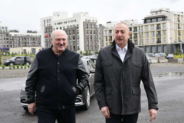 Azərbaycan və Belarus prezidentləri Şuşada gülləbaran edilmiş heykəllərə baxıblar