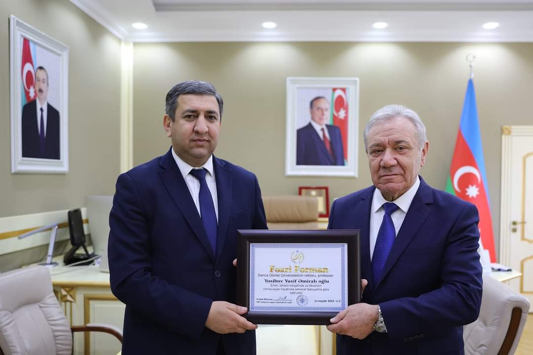 YAP Kəlbəcər rayon təşkilatının sədri Həbib Misirov Gəncə Dövlət Universitetinin rektoru Yusif Yusifovla görüş keçirdi